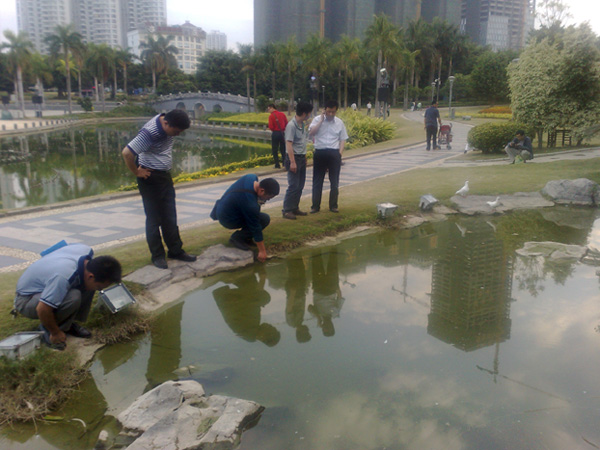 2011年11月28日,南寧市愛衛(wèi)辦常務(wù)副主任盧世偉一行到我市創(chuàng)衛(wèi)示范點及窗口單位進行病媒防制專項檢查,圖為盧主任一行檢查康凈公司負責(zé)的示范點南寧市南湖南廣場病媒防治現(xiàn)場。
